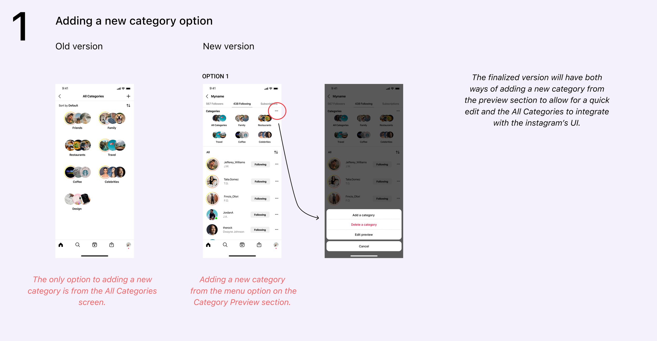 Conclusions: Overall, participants showed positive feedback regarding the process of adding a new category to sort followers.