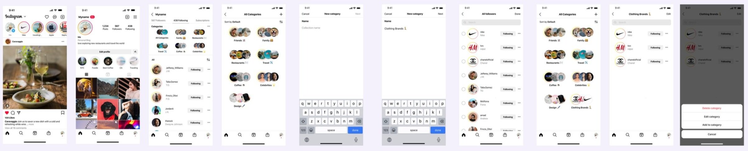 Instagram can enhance content discovery by making it easier for users to find and engage with content relevant to their interests. Validated: 80% of users are following a large number of accounts and the following profiles can be organized in categories like: Business/Brands, Restaurants/Food, and Travel were the most desired categories, with 80%, 60%, and 60% of respondents selecting them, respectively.