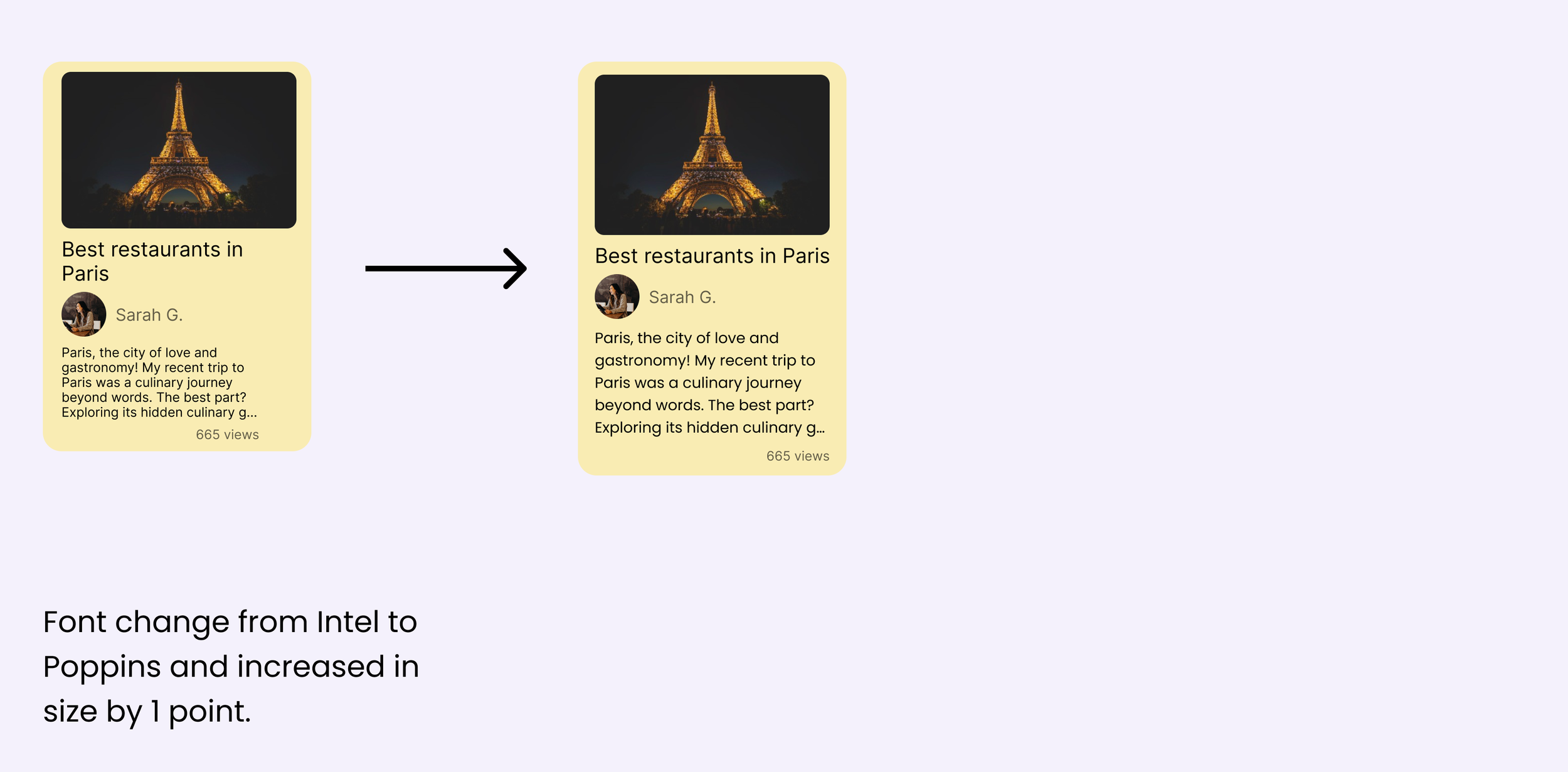 After conducting thorough usability testing, I have carefully analyzed the feedback and identified areas for improvement in the designs. As a result, the iteration process has encompassed several key changes, including font size adjustments and visual refinements. Recognizing the importance of legibility and accessibility, I have revised the font sizes to ensure optimal readability across the screens. Additionally, I have made subtle visual adjustments to enhance the overall user experience, such as refining color contrasts and streamlining interface elements.