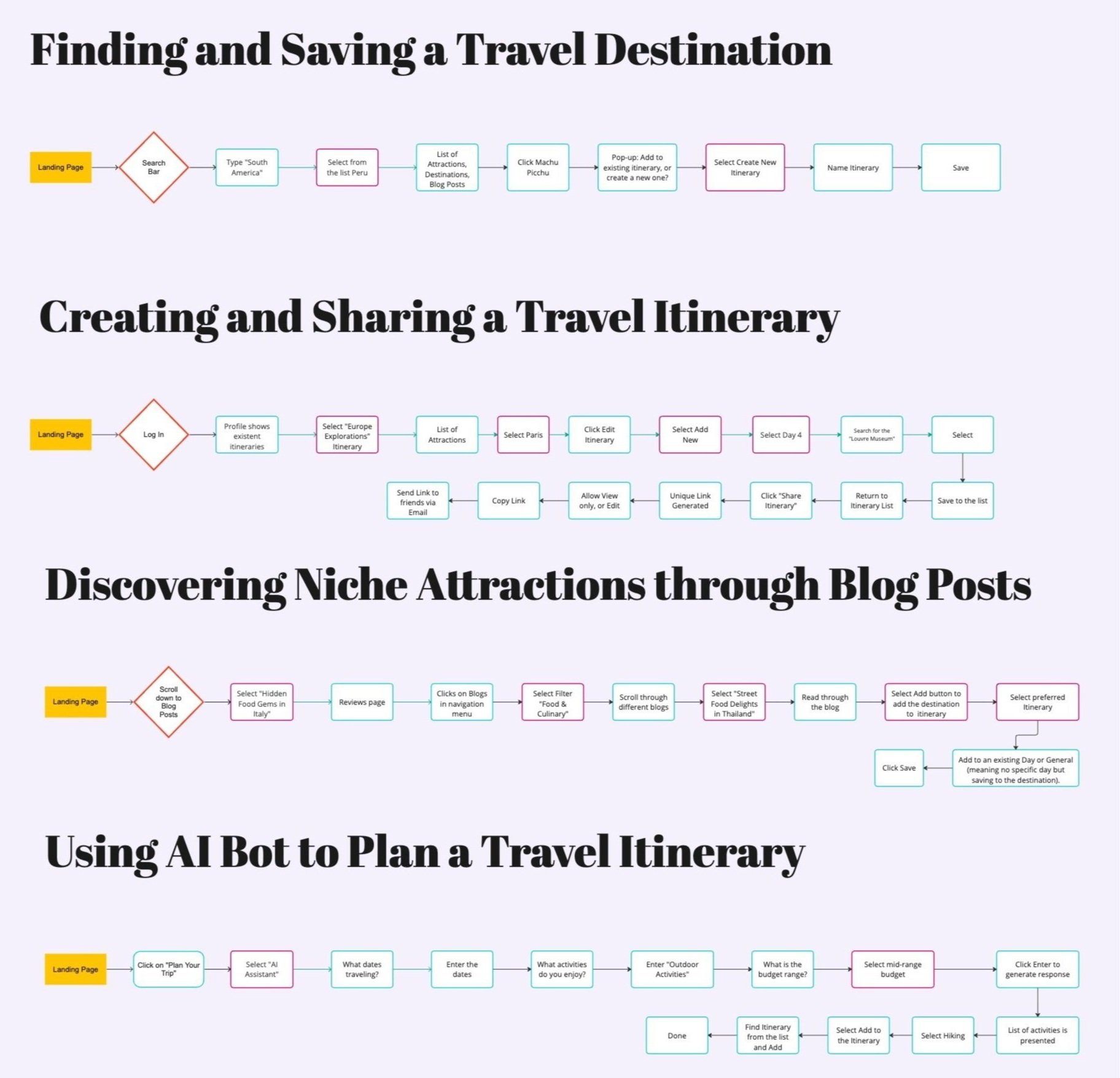 Flow 2, AI Planner:Provided feedback on design elements, navigation, and placement of content.